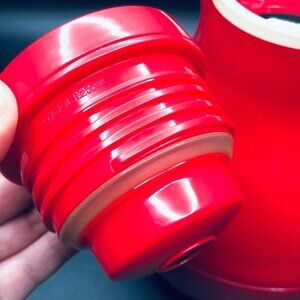 Strawberry Red Thermal Carafe by Tiger Japan, Mod Design Vacuum Bottle, Hot Cold Insulated Pitcher, Coffee Lovers Gift, 80s Postmodern -RARE