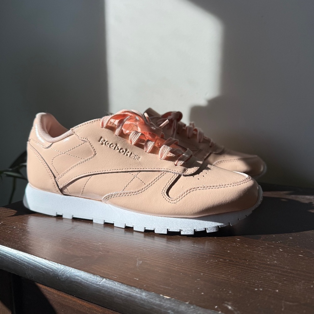 new condition, sz 8.5 women’s Reebok Classics in a super cutie pale strawberry colour.