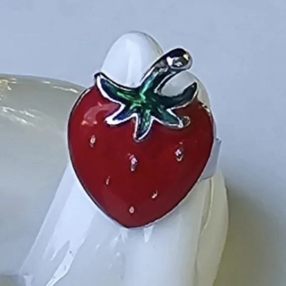 Adjustable enamel painted strawberry ring