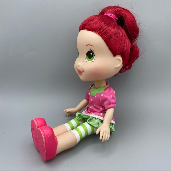 Delve into the world of nostalgia with the Strawberry Shortcake Sweet Surprise 2008 Hasbro 11” Doll, a delightful addition to any collection. This charming play doll, hailing from the beloved Hasbro product line, boasts vibrant red, wavy hair and captivating green eyes that bring her to life. Crafted from durable vinyl, the doll is designed to withstand hours of imaginative play.