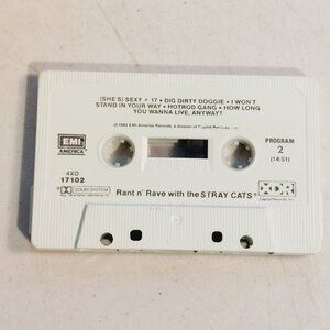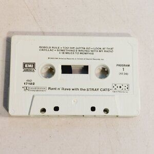 Get your hands on the classic Stray Cats album "Rant N' Rave" on cassette from 1983. Released under EMI, this pop-rock gem features the iconic tracks of "She's Sexy +17" and "Rebels Rule." The cassette format adds a vintage touch to your music collection. Tested and works perfectly, this cassette is a must-have for any Stray Cats fan or collector. Don't miss out on the opportunity to own a piece of music history. N/S pet friendly home. Please visit our closet for similar items. Thx for looking.