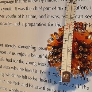 Strechy One Size Fits All Beaded Cluster Star Floral Ring in Orange and Brown