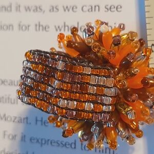 Stunning stretchy beaded cluster star burst floral ring with vibrant orange and brown beads. I have multiple colors available in my closet . These are perfect for princess girls birthday party
