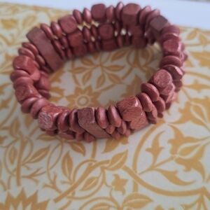 This stretch wooden bracelet, in a warm coral tone, is the quintessential accessory for sun-soaked daysin tropical sunsets and coral reefs, making it the perfect complement to both beachwear and resort attire. The natural wood construction lends a relaxed, earthy feel, while the stretchy design ensures a comfortable and adaptable fit for any wrist. This versatile bracelet effortlessly transitions from a casual day by the shore to a chic evening look, adding a touch of effortless style and vibrant color to any ensemble. The elasticated feature provides ease making it a practical and stylish choice for any getaway.