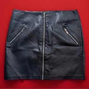 Street Society Skirt Women 9/10 Black Fux Leather Mini Full Front Zip Y2K Rock