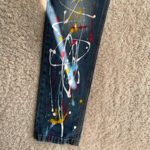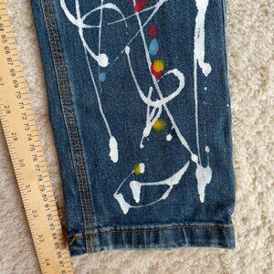 Streetwear Hip Hop Paint Splatter Jeans Women 32 Blue 25Degrees Button Fly Denim