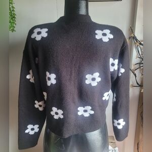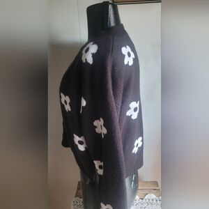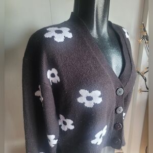Streetwear Society Black Cropped Cardigan with White Floral Designs S