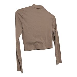 Streetwear Society Brown/Tan, Fitted, Crop, Long Sleeve Polo Top. Size M.