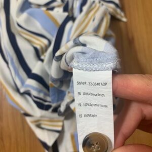 First picture is to show style. The dress for sale is a slightly different colour and stripe pattern