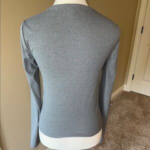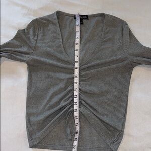 Streetwear Society Cropped Sweater Grey V-neck Ruched Drawstring Long Sleeve Top