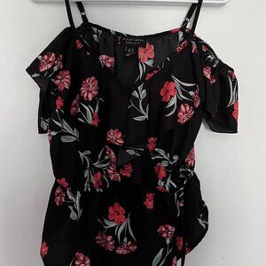Cute floral top from Streetwear Society. Can be worn off the shoulder. There's a cut out shoulder and an elastic at the waist to tighten