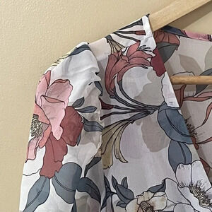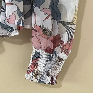 Streetwear Society| Pretty Sheer Floral Puff Long Sleeve Crop Blouse Top Sz S
