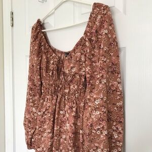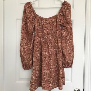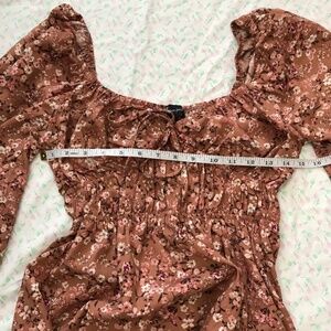 Streetwear Society Sweetheart Neckline Tie Floral Dress S Brown Pink Long Sleeve