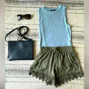 Streetwear Society Women’s Embroidered Green Euro Summer Casual Shorts Small
