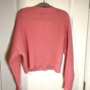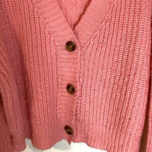 Streetwear Society Women's Pink Cropped Knit Cardigan Oversized Chunky Size XS