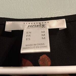 Streetwear society Floral Sheer blouse, flower print, women’s size medium black