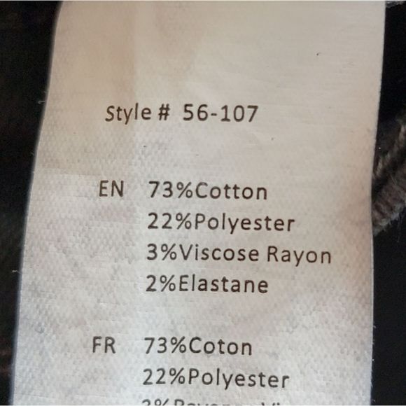 73% Cotton 22% Polyester 3% Rayon 2% Elastane