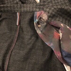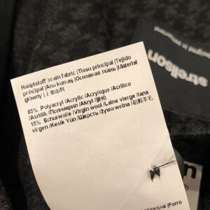 Pockets at front and one pocket inside. The material combination is acrylic 85% and 15% virgin wool, the sleeve lining is made out of 100% Viscose