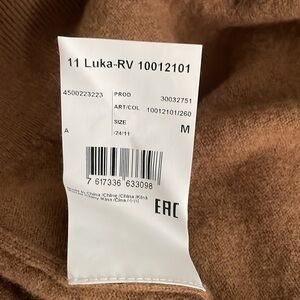 Available sweater is a brown/caramel colour. Model photos of the gray sweater for style.