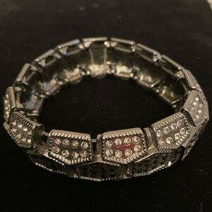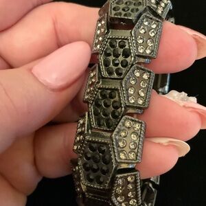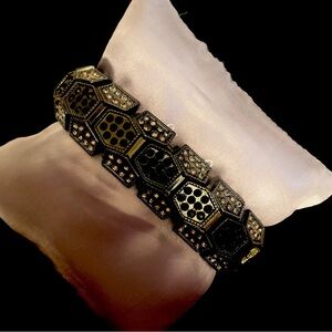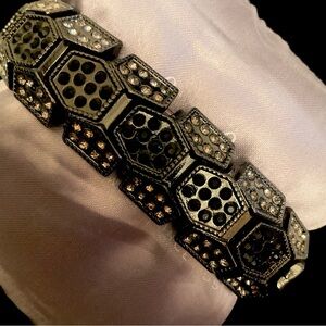 Stretch Black Bangle Hematite & Clear crystal Pave Geometric Statement Bracelet