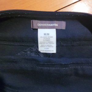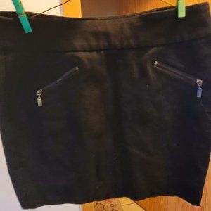 16 inch length, short skirt, thick stretchy fabric. 2 front zippers. New. Great for work in black and whites.