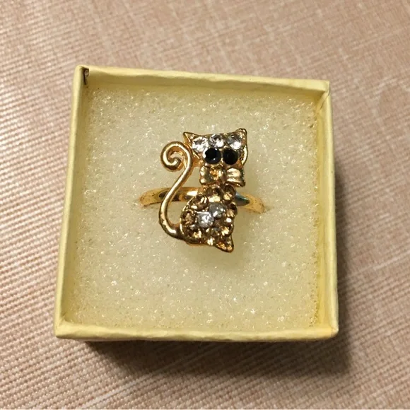 Stretch rhinestone cat ring.
