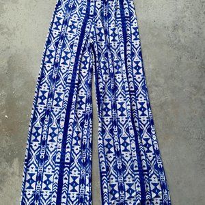 Stretchy Blue and White Pattern Flare Bell Bottom Wide Leg Lounge / Yoga pant