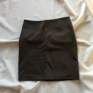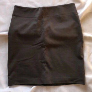 Grey fabric stretchy pencil skirt. Zip up in the back. Very flattering on the rear end. Made by New York & Company. Size 2.