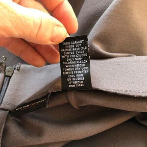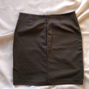 Grey fabric stretchy pencil skirt. Zip up in the back. Very flattering on the rear end. Made by New York & Company. Size 2.