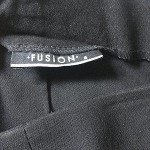 This classic and chic black pencil skirt has a unique and sexy slitted panels in the front.