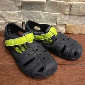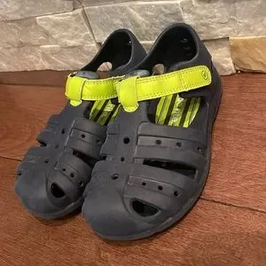 No size indicated on a tag or on shoe, but when compared to other toddler shoes, they appear to be a size 8/9 toddler