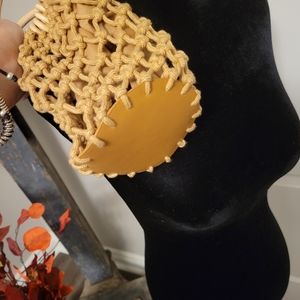 Quite possibly the world's smallest purse! Is it useful? Probably not! Is it adorable? Damn straight! wooden handles, string body, faux leather bottom with a drawstring cotton insert (thank Goodness cuz your stuff would be everywhere)