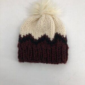 Strings & Things crochet toque burgundy chevron Pom Pom beanie (toque)