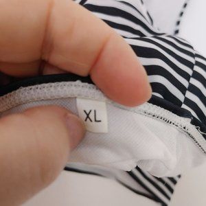nautical looking with a razor back black and white stripe bathing suit top. in size XL.