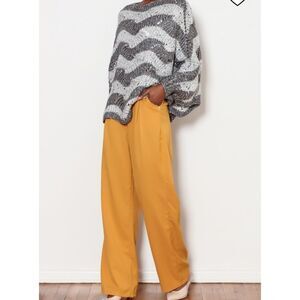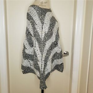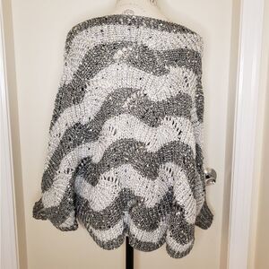 Light & Dark Grey Striped Loose Knit Pullover Sweater with Scallop Trim and Shiny Gold Thread, by Hilary Radley for KATHERINE BARCLAY.
