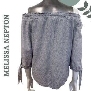 Striped Bardot Blouse Tie Sleeves | Off the Shoulder | Melissa Nepton Medium
