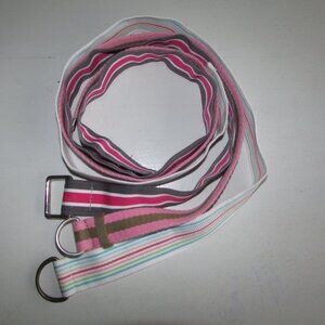 Pink and olive green striped - thicker woven welting - 1 1/4" x 43" (includes buckle rings)