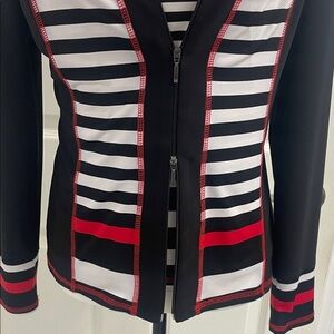 Striped Black and Red Twin Set Cami & Jacket Top 2 Way Zipper Long sleeve Size S