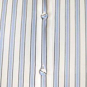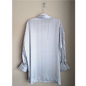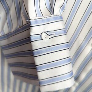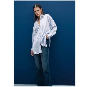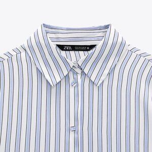 Elevate your style with this chic striped blue and white top. Perfect for any occasion, this top offers a blend of comfort and elegance.