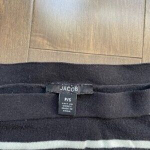 Jacob boatneck sweater. Fine knit, fits snug. Worn but in very good condition for its age. No longer fits me postpartum. Small hole on sleeve (see picture). The hole has been there since the sweater was purchased and not gotten bigger.