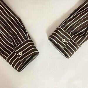 Elevate your wardrobe with this chic striped button down shirt. Featuring a classic black and white design, it's perfect for any occasion. Enjoy comfort and style in one versatile piece.