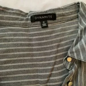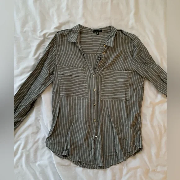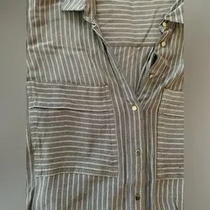 Elevate your wardrobe with this stylish striped button-up blouse. Perfect for any occasion, this top offers a chic and versatile look.