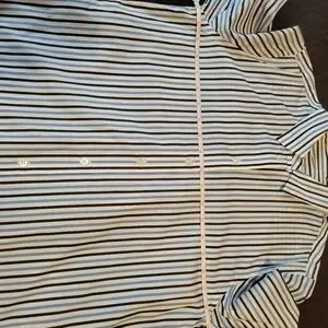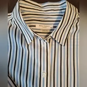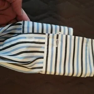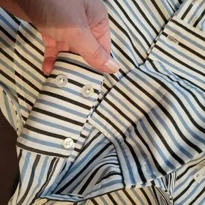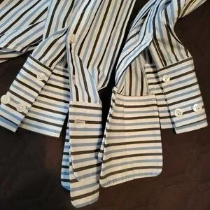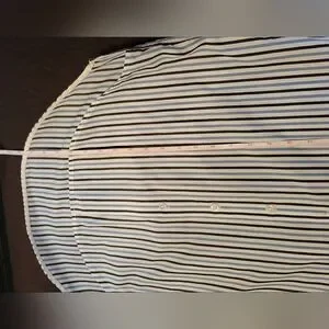Stylish striped button-up shirt. Features a classic collar and long sleeves. Perfect for casual or formal wear.
