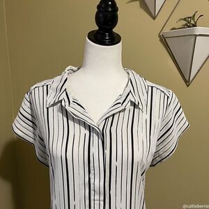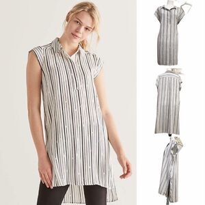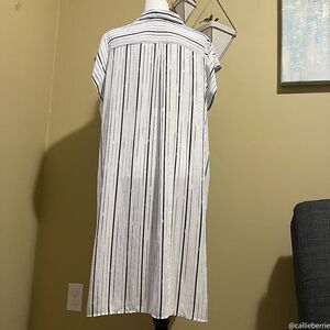 Fabulous lightweight and Long length tunic with slits on the sides with a classic striped print. Features a collar and buttons halfway down. Excellent used condition.
