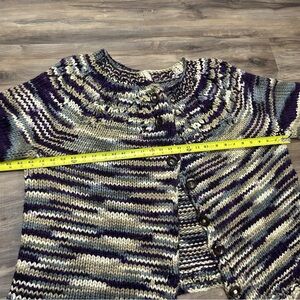 Elevate your wardrobe with this elegant striped cardigan. Featuring a sophisticated blend of purple and gray, it's perfect for adding a touch of style to any outfit.