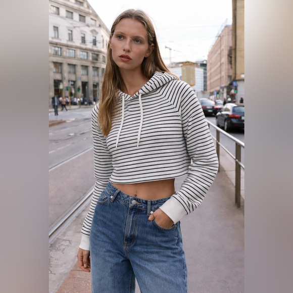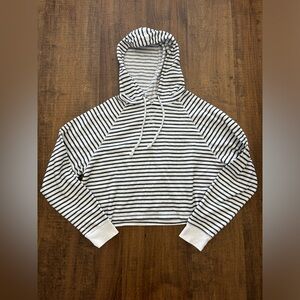 Striped Cropped Hoodie - Black and White