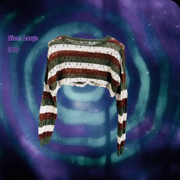 Striped Earth Tone Sweater, Cropped By Me🤎 Size: Large Brand: Romwe