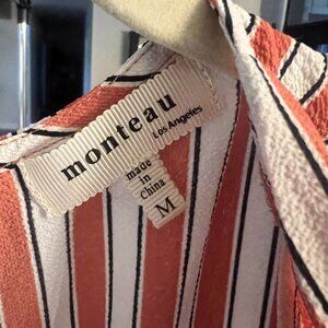 Monteau Striped Casual Summer Dress V Neck Elastic Waist Size Medium Runs Small