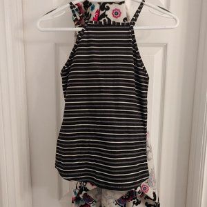 Black with white stripes, three thin white lines and a fairly thick white stripe.