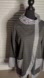 Stylish gray top with striped accents. Features a hood and front pockets.